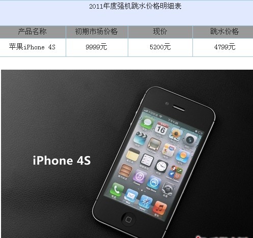 以上就是笔者为大家奉上的2011年热门机型跳水排行,苹果iPhone 4S以4799元跳水价位居榜单之首,5200元的售价确实相比此前便宜了不少,但是在笔者看来仍然稍显偏贵,建议有米之人购买。此外对于近期有购机需求的朋友,笔者认为HTC Desire S、HTC Incredible S、索尼爱立信LT15i以及摩托罗拉Atrix 4G还是颇为值得考虑的,中意的朋友可以与文章下方经销商取得联系。