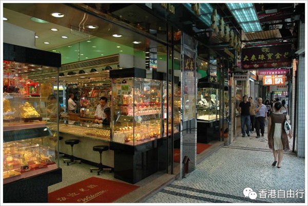 澳门的黄金首饰,主要分布在新马路、殷皇子马路、高士德大马路等一带。因为本地较为有名的珠宝店都是老字号家族经营,商誉上较有保证,且成色标准、服务态度等亦较良好,加上老字号商舖早在本地站稳阵脚,租金成本较低,因而珠宝首饰的售价亦相对便宜,不少外地游客会到澳门珠宝店购买黄金首饰。当然,由于这都是贵价奢侈品,在购买前,不妨多逛几家店舖比较一下价格,亦请索取保证卡及保管好收据,做个精明消费者。