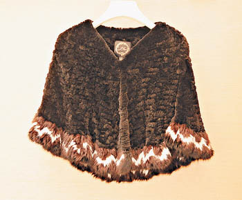 深啡拼浅啡白色花边皮草斗篷。(售价待定)