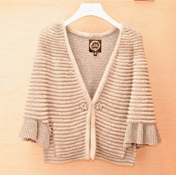 象牙灰色皮草中袖外套。($19,800)