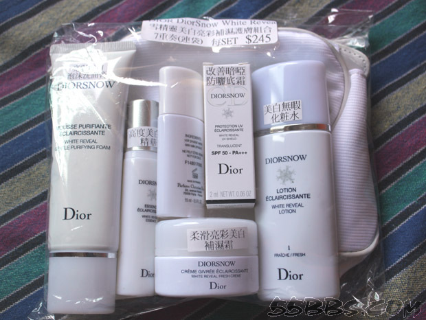 1、DIOR SNOW WHITE REVEA雪精灵美白亮彩补湿护肤组合7件套 价格245港币