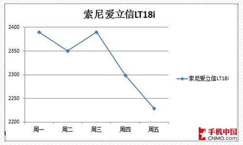 时尚的外观设计、主流的硬件配置以及出色的拍照效果让索尼爱立信L(参数 图片 样张 评测)T18i在市场中有着颇高的人气,市场销量一直不错。目前售价也是相当给力,从下面的走势图中我们可以看出,本周LT18i整体呈现下降趋势,截至目前售价却已降至2229元。
