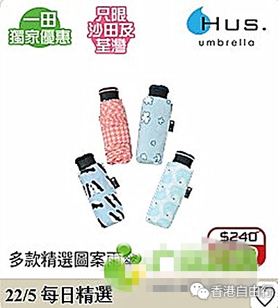 HUS防UV抗强风的雨伞。原价240,七折。这牌子在香港和日本比较出名。我就看上它小小的,放包包里又轻又不占多大地方。对比下,旁边是4S.