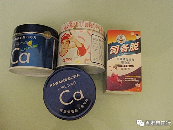卡哇依的肝油钙丸、钙丸和司各脱多种维他命咀嚼片。