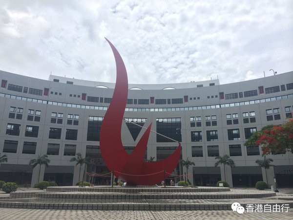 我看了港铁图,坐到坑口站下车,然后找到小巴直接就可以到港科大。路很好找,巴士也是在类似天桥的下面,出了地铁就能看到标志,或者跟着导航也能找到。到了港科大下车,走不远就能看到学校的地标(我这么想的),一个红色像火焰一样的雕塑,不知道是什么寓意。