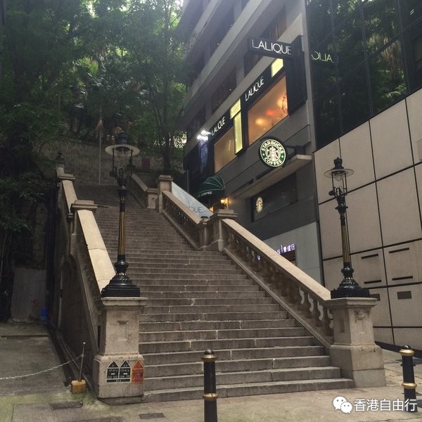 九记的店面很小,在外面排了会队才进去,但不是饭点所以也没有排很久,吃完九记有4点多了,我们准备去坐山顶缆车。走去山顶缆车的路上还看到了煤气灯街的路标,赶着上山就没去找,但是我后来一个人去啦,照相留念www…走去坐缆车一路上都是这样呢,路很干净,人很少,喜欢~