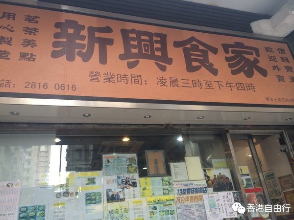 因为同学有事,所以第三天的上午是我自己逛的~一大早爬起来去之前查的吃吃吃攻略里面提到的新兴食家吃早饭!!!这家貌似是陈奕迅会光顾的一家,其实很好找的,出了坚尼地城站找到通往土美菲路的出口(貌似是A2口)然后直走两个路口就到了。我就是傻一直低头看导航其实一抬头就能看到的我竟然走过了两次!!!最后走到马路对面才看到,智商也是醉了……不说了上图!