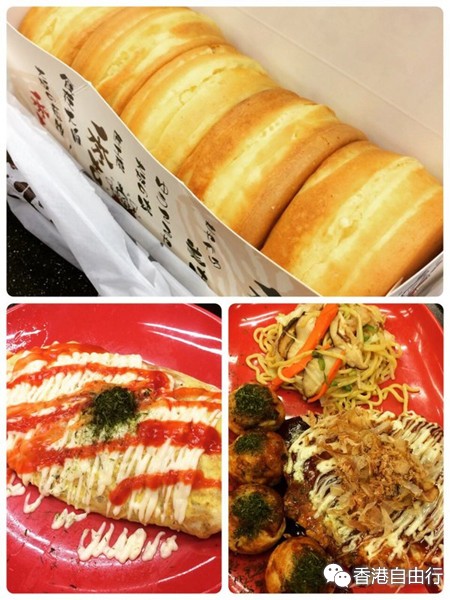 我们买了一个套餐,就是右下,上面和左下的是单点的,这样我们就吃到了他家所有种类的小吃,这么多一共花了102港币,还是很划算的,两个人吃的很饱。又忘记他家店名了= =不过很好找,看我的照片就能找到啦!上面那个饼名字好像叫大板烧,是买4送1的,有红豆和芝士两种口味,很好吃哦~剩下一个芝士的没吃完放同学家冰箱了,同学吃过说冰过的也超好吃!左下不是蛋包饭,是蛋包面,和右下的面是一样的,我俩都觉得如果是蛋包饭那这顿就更赞了!右下的章鱼小丸子很好吃,上面的绿色粉末好像是绿茶粉。旁边那个饼上面铺的有鱿鱼丝,就是稍微有点咸。