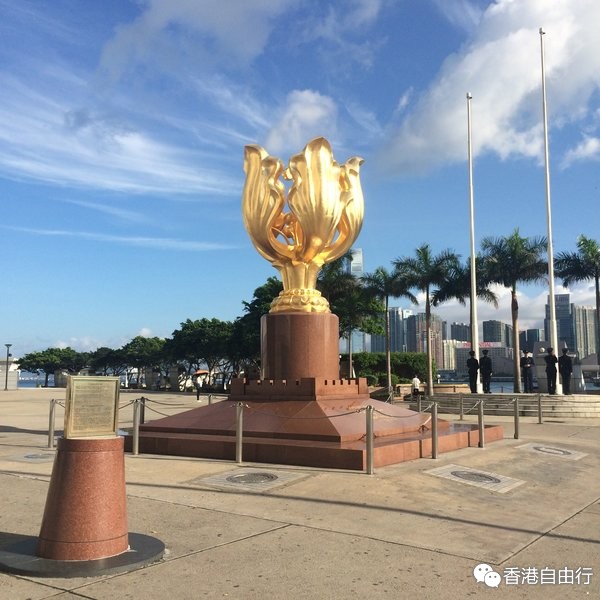 终于又要开始打鸡血了,早上6点多爬起来梳洗,不到7点半就到湾仔了。其实我觉得探秘一个城市最好的方式还是在那里住一段时间,融入当地的生活,如果没有条件的话,就只能每天打鸡血了,毕竟一个上午一晃就过去了。那天天气超棒,天很晴而且没有太多的云,码头的景色真的很惊艳我!比前几天看到的都好看很多很多很多!!!之前在网上查金紫荆广场升旗的时间,是7点50开始,持续10-15分钟的样子,这个时间绝对比天安门广场的升旗要可爱很多啦,当然阵势也是不能比,只有5个人主持升旗。金紫荆广场就在湾仔码头旁边,我到的时候只看到两三个游客,升旗的军人(还是警察?傻傻分不清楚,在做排练,后来真正开始升旗的时候也不过10来个人在围观。清晨的香港还是很忙碌的,但是跨过城市和车流,走到海边,就是另一份轻松和清新了,再加上那天的好天气,简直让人神清气爽~我在旁边还看到了小的唱诗班一样的几个人,有人弹吉他有人唱,国语粤语都有,很好听,我还顺手录了小视频。真是美好的早晨!