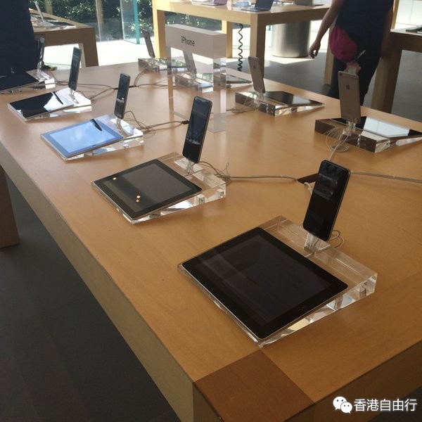 默默走到商场,想观摩一下传说中的Apple watch,就在那个有巨大苹果标志的香港苹果旗舰店那里,看看会有多么高逼格。事实证明,确实非常高逼格。可惜到了才发现人家还没开始营业,我就在一边蹭网等开门。这家苹果店好像是有两层的,我只在下面简单看了看。高逼格在于,人家产品简介都不是塑料小展板啊,都是iPad啊,玩儿了一下Apple watch,土鳖表示不太会用,但是介绍视频做的确实不错。