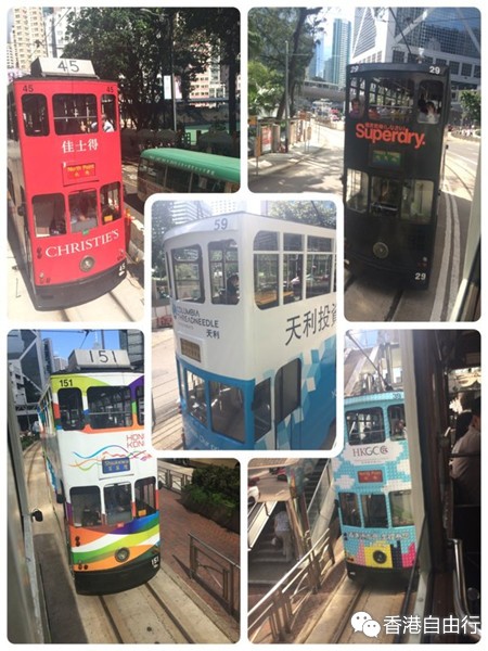 到了湾仔地铁站附近,我看到了叮叮车的站牌,刚好有一辆停下了,我就赶紧上了车,走到2层找了座位坐下来,想感受一下慢下来的香港。后来发现也不慢嘛,迎面开过来的好几辆叮叮车都拍糊了,有好几辆只拍到了车屁股,但是都好可爱啊,像穿着不同花色衣服的小矮人~一路看到自己过去几天走过的地方,还是很感慨的~