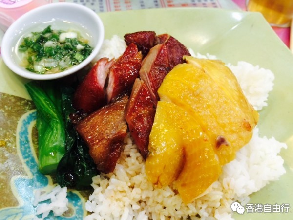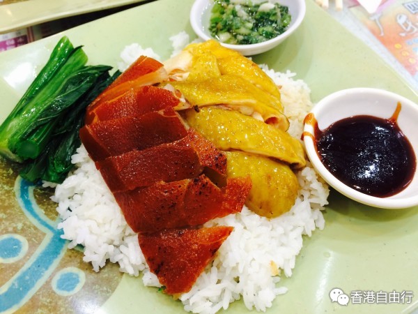 当然冻奶茶是我的必点~!两个人都吃的双拼饭,老公的是“叉烧+豉油鸡”,我的是“脆皮乳猪+豉油鸡”,原本还想去“肥姐小食店”吃招牌的大生肠、大墨鱼的,谁想到!6.20-6.22休息!!!正好是我来香港的这几天。