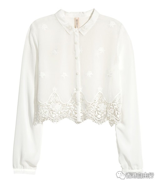 绉纱雪纺短上衣,绣花网布上幅,长袖袖口有弹性,圆边后摆稍长。