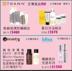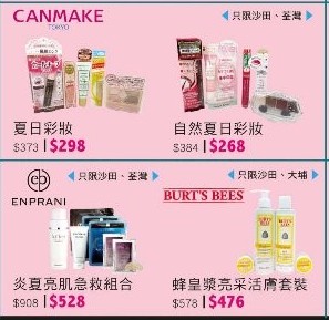 香港打折:一田百货盛夏美肌大作战超多化妆品购物优惠(至15年8月3日)