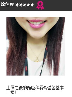 于咀唇涂上唇妆,测试与唇妆本身的原色程度。
