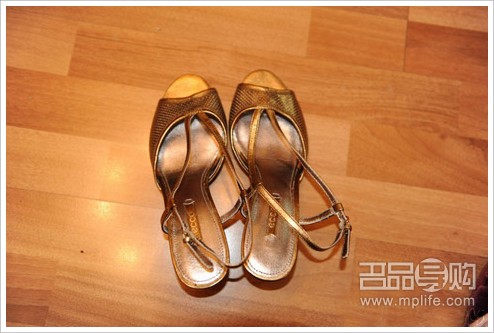 还是凉鞋,金色的,图片颜色拍的暗了,这个穿上显得脚很小哦~~