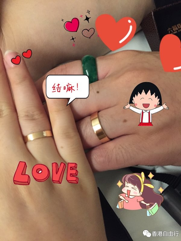 订完了钻戒下楼遇到了六福,想着进去看看对戒吧,有合适的就买了,一开始想买铂金,而且我们俩都喜欢简单的样子,而香港铂金戒指(不带钻)样子好少,没有合适的起身要走,这时店员问我们看不看K金的,来都来了还是看看吧,没想到有我们喜欢的样子。