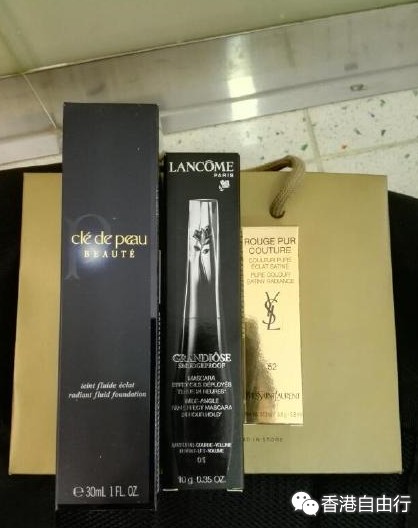 FANCL卸妆油,挺漂亮的纪念版盒子,CDP的粉底液,980港币,兰蔻睫毛膏,295港币,YSL方管52号,295港币……下面上图。