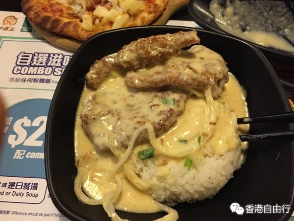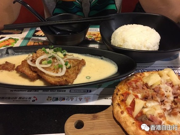 雨天的香港,全是云雾。出行不太方便可是胜在凉快。晚上挑了尖沙咀的沙嗲王吃饭,点了招牌的白咖喱香茅猪扒饭、安格斯肥牛拉面及一个小披萨。味道很好,猪扒饭更好吃,只是吃完略腻。