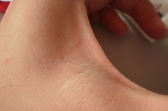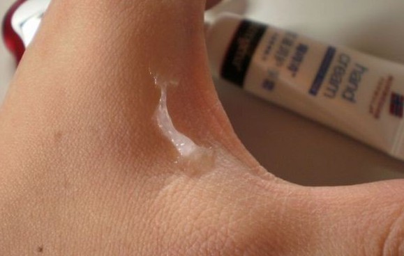 涂开双手发白,我想不会这样难吸收吧,可是当我继续按摩的时候,白色的膏体在3秒之内完全被吸收了。手上就显得很滋润。真的很神奇啊。