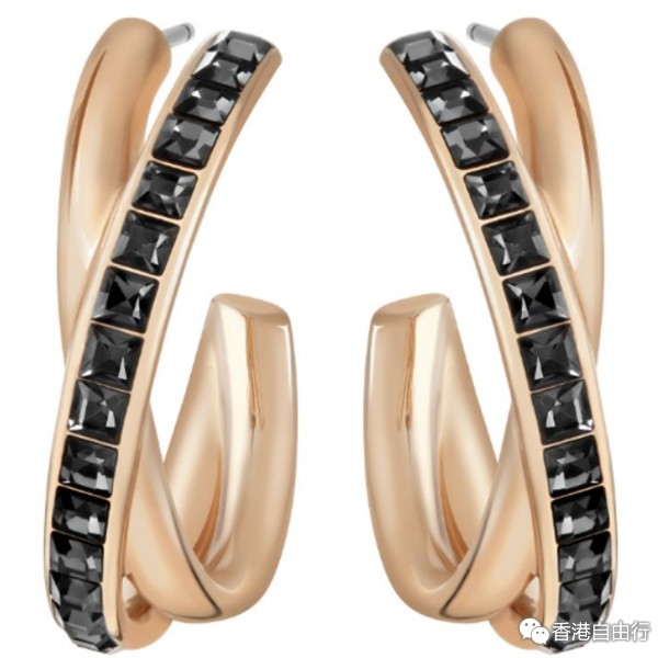 这对大圈穿孔耳环以圆形和螺旋形为灵感,并透过深色水晶和镀玫瑰金色金属,展现时尚迷人的对比效果。 精致优雅的设计,可为休闲服注入恰到好处的光彩魅力。