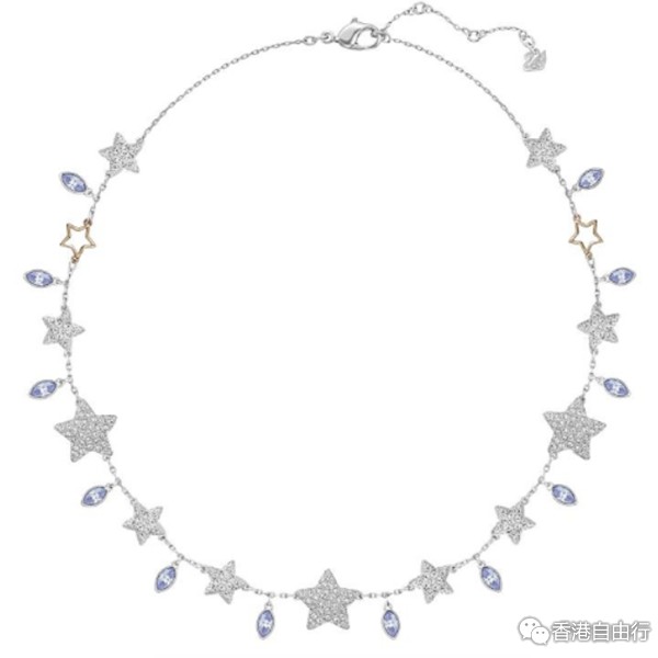 这款融入多种镀层的Star短项链,是由米兰达‧凯尔(Miranda Kerr)与施华洛世奇携手创作,可为造型注入银河般的闪烁光彩。 除缀有蓝色水晶外,项链更分别饰有密镶水晶及闪现金色调的星星装饰,瞩目耀眼的设计,最适合搭配其他项链和链坠来营造层次感。