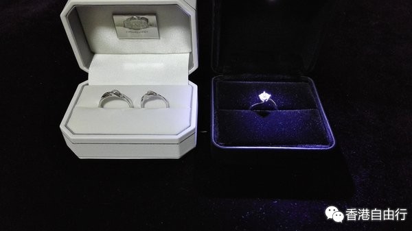 第二天去买钻戒,4C为 90分 D色 VS1 3EX 应为要刻字所以要等2天拿。成品如下(右边的)