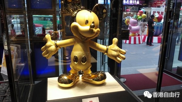 在北京道路口发现好大一家周大福。一进这家店就看到一个用黄金做的米奇,正好我们今天要去迪士尼玩,算是提前给我们一个惊喜啦。最后就在这家周大福选了对戒。