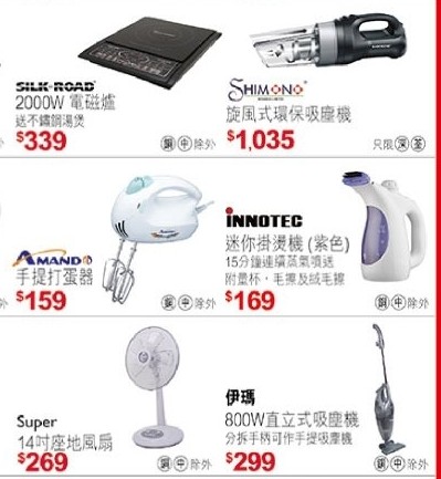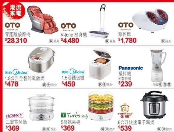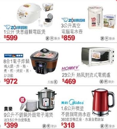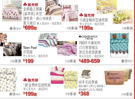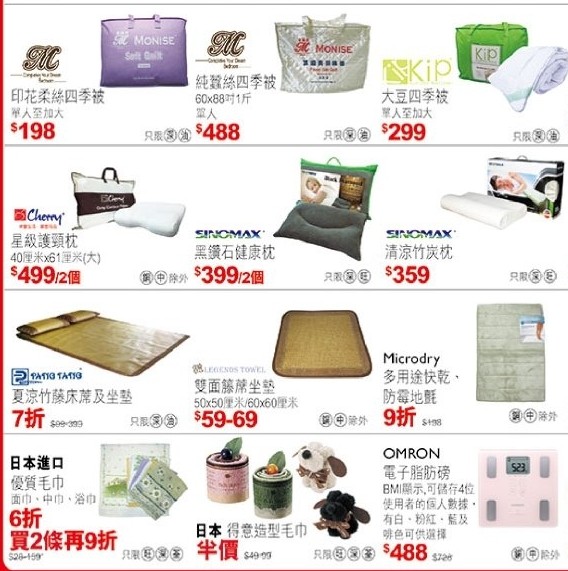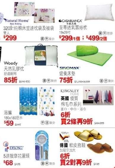 4.电器、家品、寝具、浴室及旅行用品折实后额外95折(指定货品除外)