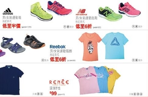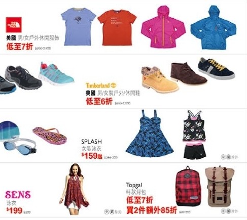3.男/女户外、运动服饰鞋履及童装服饰鞋履折实后2件再85折(指定部门单一发票计算、指定货品除外)