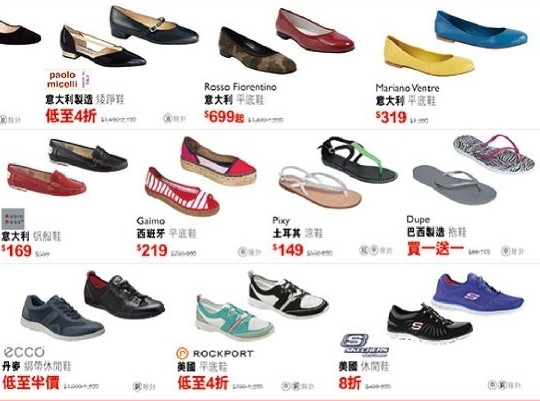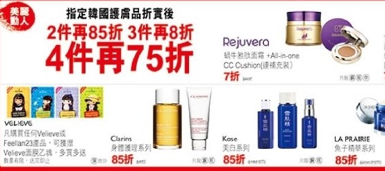 2.男/女服饰鞋履、手袋及护肤品折实后2件再85折; 3件再8折;4件再75折(指定部门单一发票计票、指定货品除外)