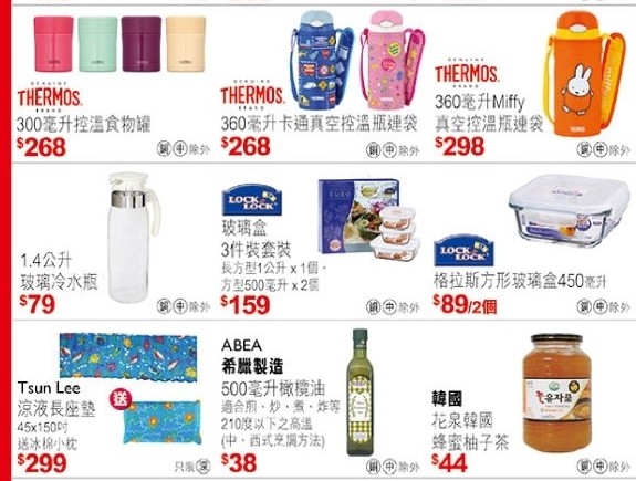 5.电器、家品、浴室、寝具、食品及旅行用品同日累积购物折实满$1,800或以上送欧洲红酒(每张发票最多可获赠乙支,数量有限,送完即止)
