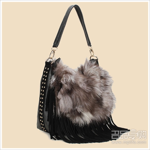 高质感的真狐狸毛配上高质感的牛皮皮质,加上时尚流苏的装饰,是一款高档奢华包