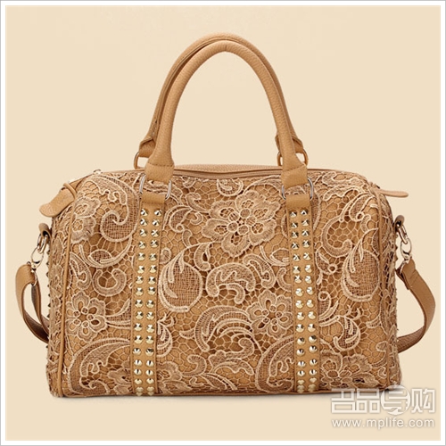 时尚的蕾丝配上高质感的铆钉作为装饰,让包包更具时尚感.