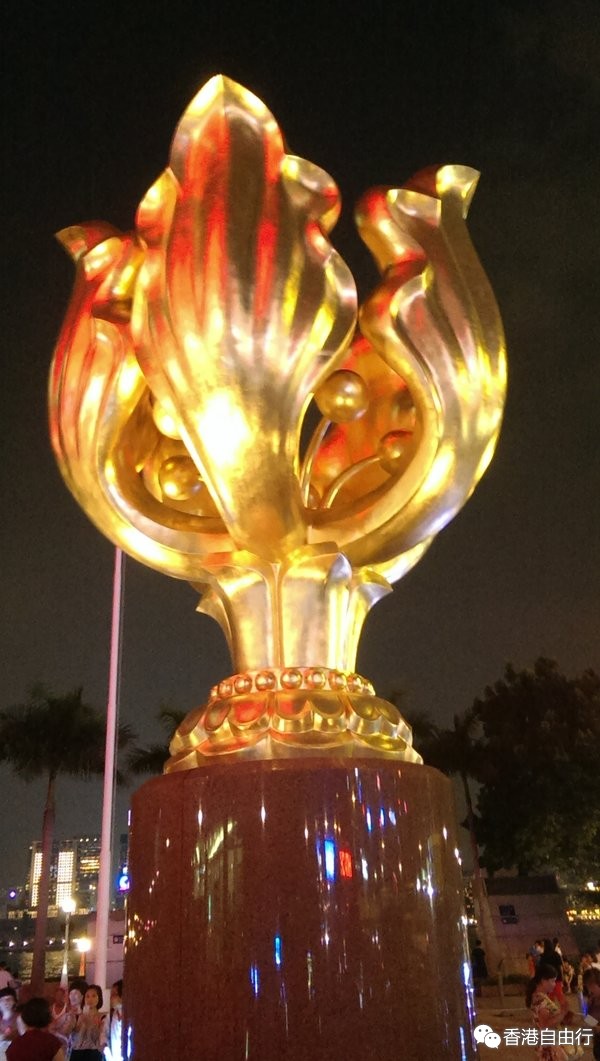 晚上去了湾仔码头金紫荆广场参观雕塑。期间突然人头涌涌,原来是碰巧有旅行团来参观,真的很热闹。