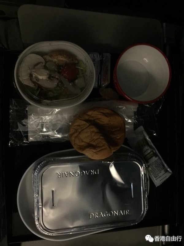 飞机餐味道还是很棒的,面包配黄油和草莓酱特别好吃