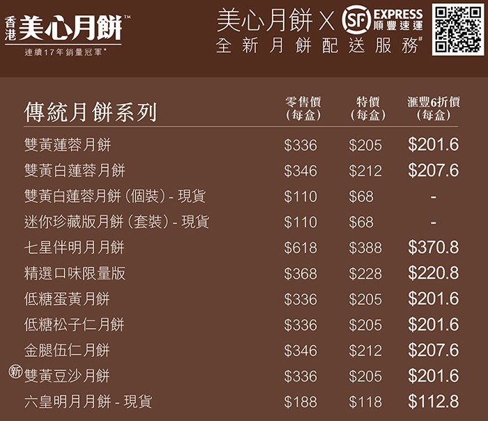 美心月饼,以心,传颂中秋味道。美心月饼心繫一处, 坚持香港製造,专注每一个细节,全心投入做出最好的中秋味道。这份对传统月饼品优质高的执著,令美心月饼深获全港市民认同,连续17年香港销量冠军。