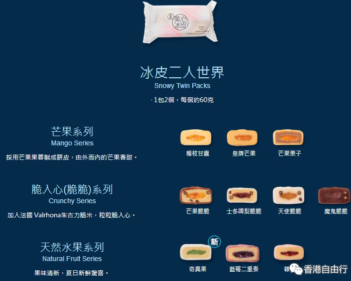 冰皮系列:包括幻彩粒粒冰、冰皮月饼礼盒、冰皮迷你4、冰皮二人世界
