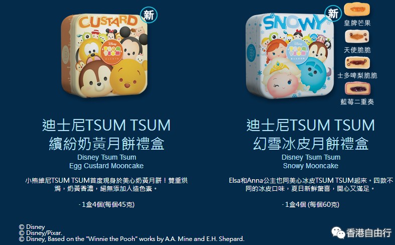 卡通系列:包括迪士尼TSUM TSUM缤纷奶黄月饼礼盒及迪士尼TSUM TSUM幻雪冰皮月饼礼盒