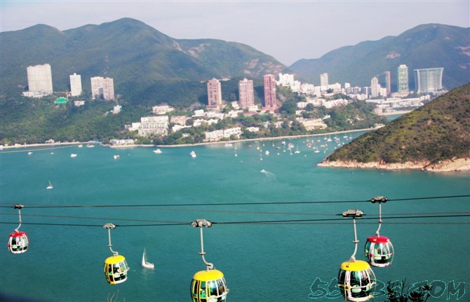 从缆车往下看,一面是山,一面是海···············