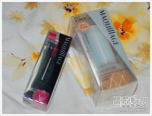 资生堂MAGUILLAGE心机彩妆的搪瓷镁光唇膏和纯白精华防晒液质粉底。粉底液是2011年全新秋冬款,特别适合现在这个季节使用,80%精华成分,遮瑕修饰皮肤的同时具有护肤功效。
