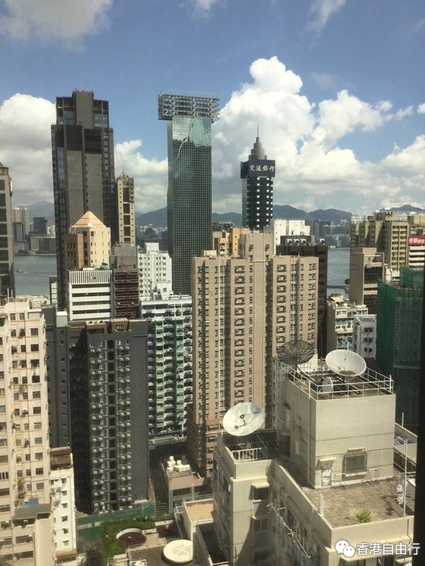 今天香港终于晴天,阳光灿烂,我们的房间在24楼,也算能看到海,景色还不错。