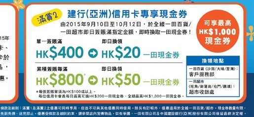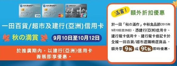 香港打折:全线一田超市中秋节food fair购物优惠(15年9月10至26日)