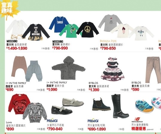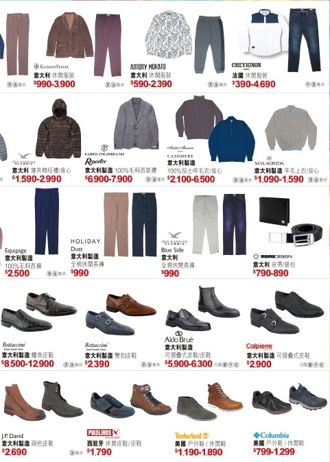 1.男/女服饰鞋履及手袋2015秋冬新到自营货品,单一部门单一发票折实每满$500,可获$300现金券乙张