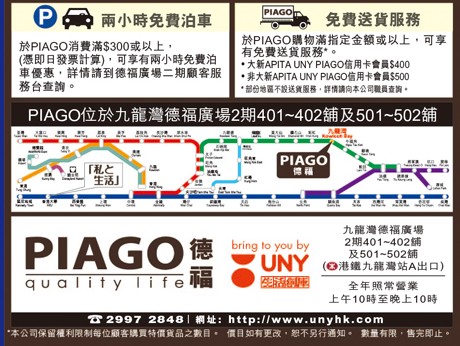 香港打折:PIAGO德褔 Mid Autumn Festival购物优惠(至15年9月27日)
