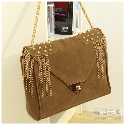 超帅气的军工风肩章包,铆钉和流进链条一秒钟锁睛,卡其色也别有一番风味哦~