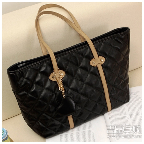 简洁的PU车线菱格纹设计,蓬蓬绵绵的立体感,可爱的桃心坠饰,简约的设计,却又不简单的品质之感