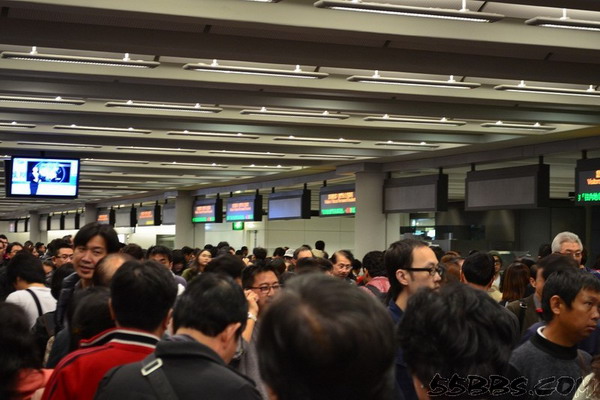 香港机场入境处人山人海。所以你一下飞机就赶紧奔吧,尽量走在前面少排一会。我们排了30多分钟吧。