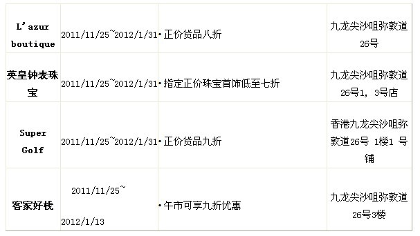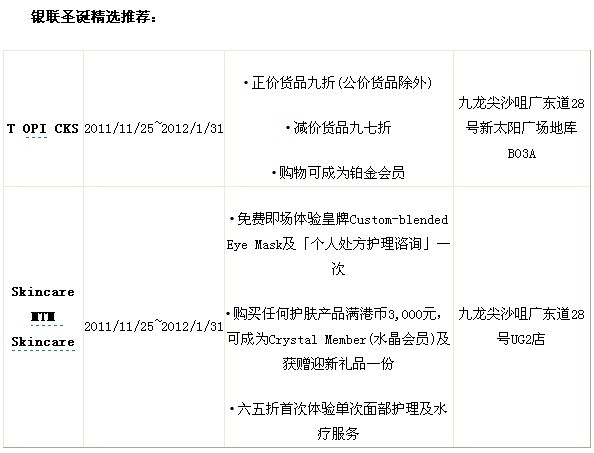 香港2011银联缤纷冬日赏折扣一览