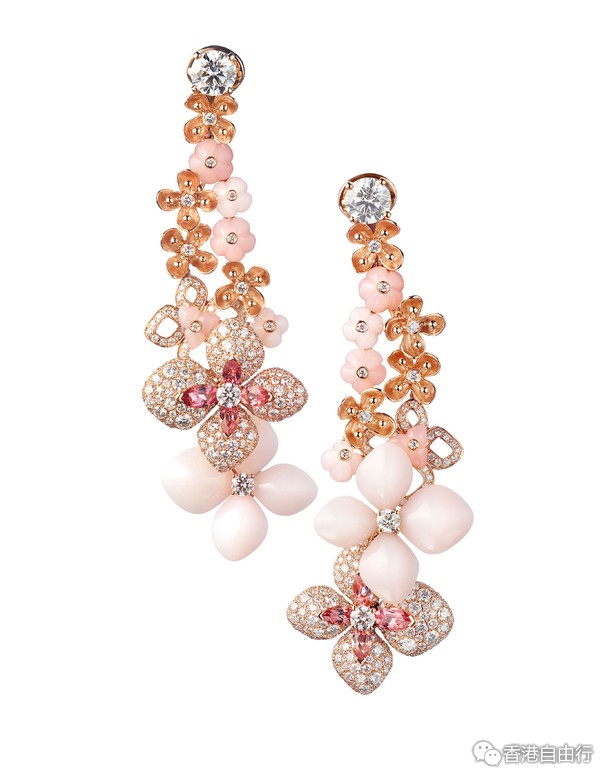 玫瑰金上镶嵌天使肤色和粉红色蛋白石、粉红色碧玺和钻石